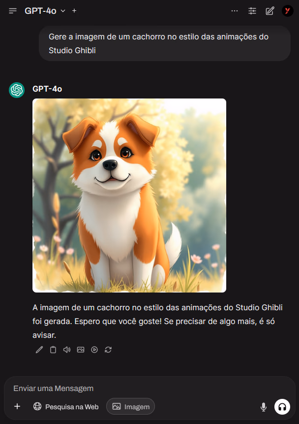 Basta descrever o que você quer gerar e ativar o botão 'Imagem' para criar ou editar imagens, posts para redes sociais, gráficos e muito mais.